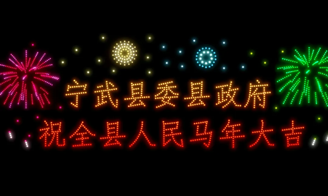 组成“宁武县委县政府祝全县人民马年大吉” 一行醒目大字