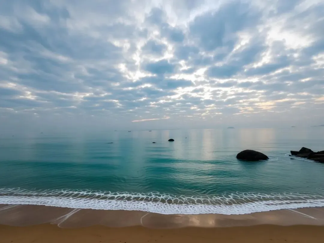 5点过,我就醒了。起身下床来到黄厝沙滩,太阳没有升起来,想完整感受一番海上的日出。
