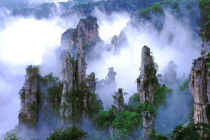 早餐后游览张家界第一个国家森林公园【武陵源核心景区】,参观【袁家界景区】(百龙电梯65元/人,费用已含):探寻《阿凡达》电影中的群山漂浮、星罗棋布的玄幻莫测世界--“哈利路亚山”即“南天一柱”(又名乾坤柱),参观云雾飘绕、峰峦叠嶂,继往气势磅礴的迷魂台、天下第一桥等空中绝景;远眺张家界北纬30°地理新发现杨家界