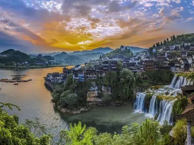 4.体验网红瀑布-芙蓉镇;沱江两岸【湘见沱江、七重水幕灯光秀】