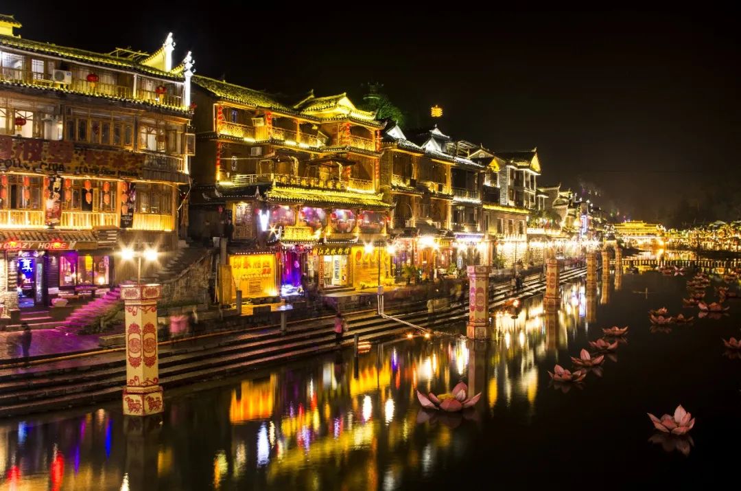 后乘车前往美丽小城【凤凰古城/接驳车已含】沱江两岸欣赏【湘见沱江·七重水幕灯光秀】是一次光影科技与苗族文化的完美融合,是中国首个以苗族文化为