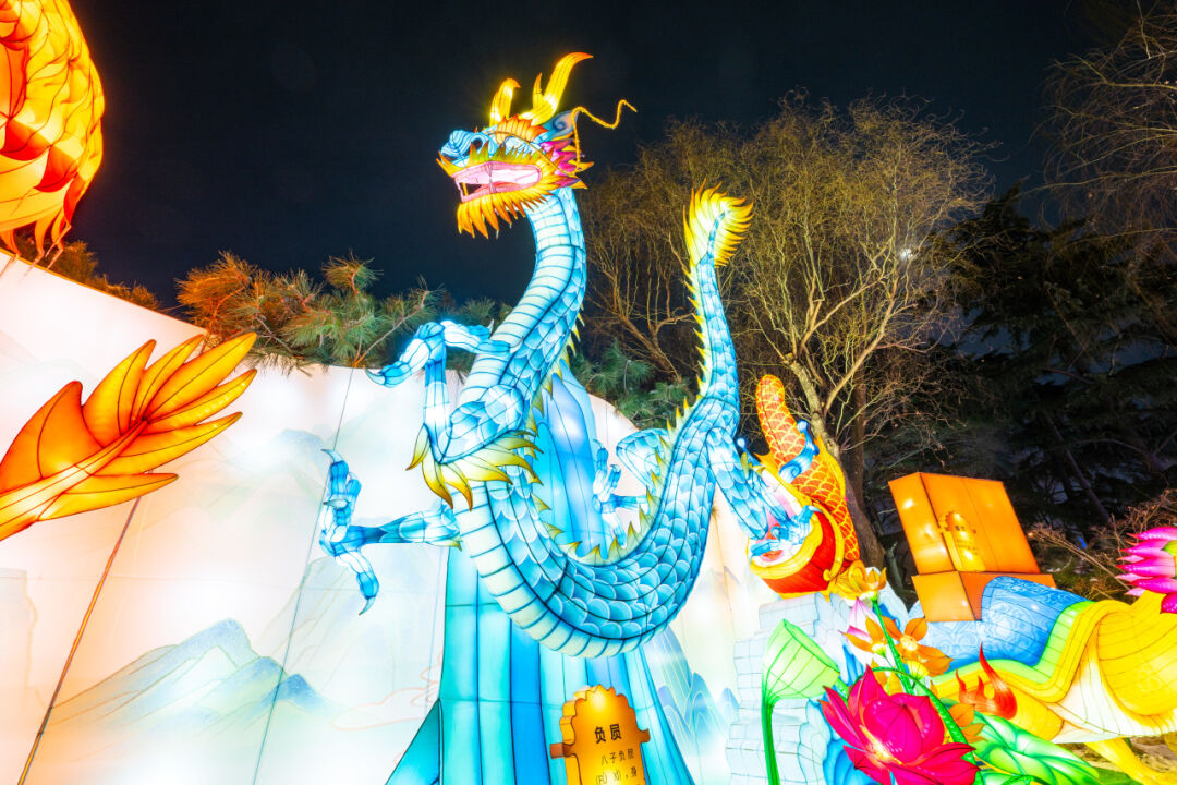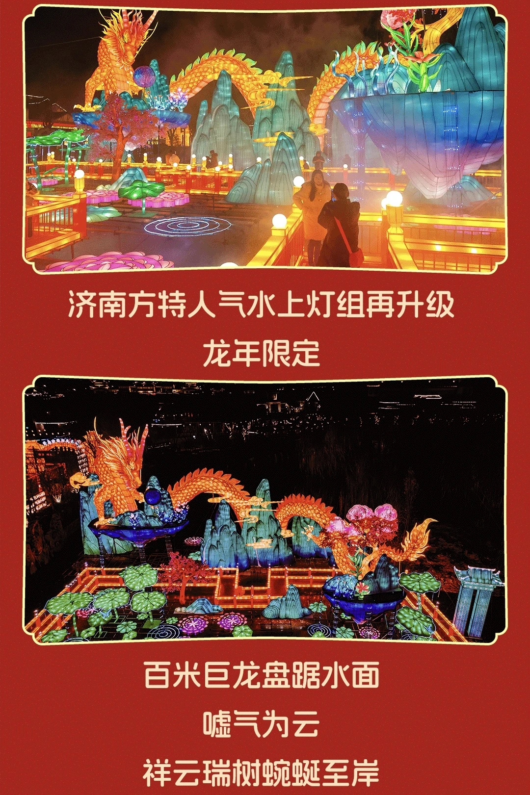 济南方特东方神画景区新春灯会分为“神龙降世”“九霄龙女”“灯火长街”三大板块,以龙为创意元素,体现出龙年喜庆氛围和中华民族的龙马精神。