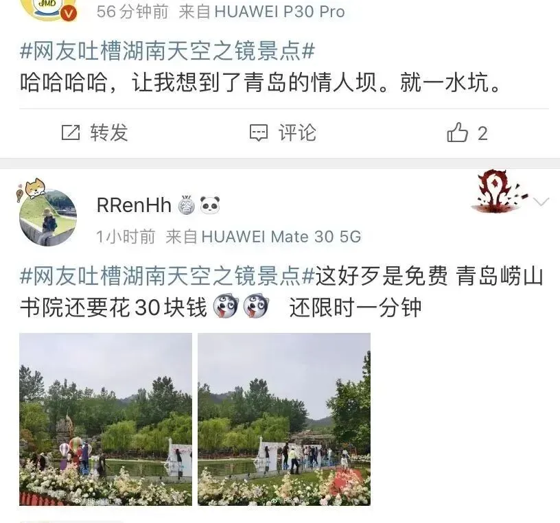 “网友们吐槽湖南天空之镜景点” 登上热搜