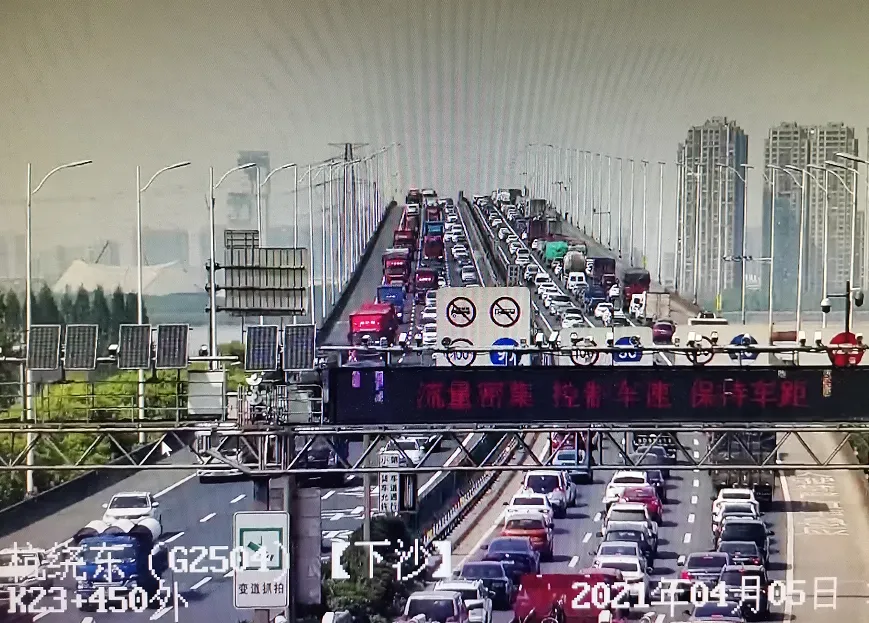 4月5日上午,G40沪陕高速崇明往上海市区方向长江大桥多段已开始出现拥堵:9时17分,G40市区方向51.5K(陈海)后方车辆通行缓慢2公里;G40市区方向37.9K(长兴岛)后方车辆通行缓慢13公里。