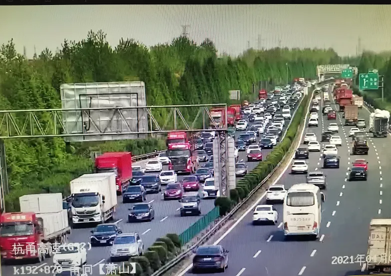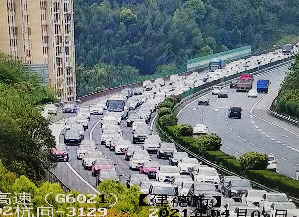 目前,杭州辖区内各条高速流量都已经相当壮观,其中多条高速有进口关闭。