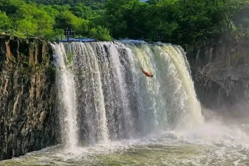 “到镜泊湖,必游吊水楼瀑布;游吊水楼瀑布,不可错过悬崖跳水表演!”