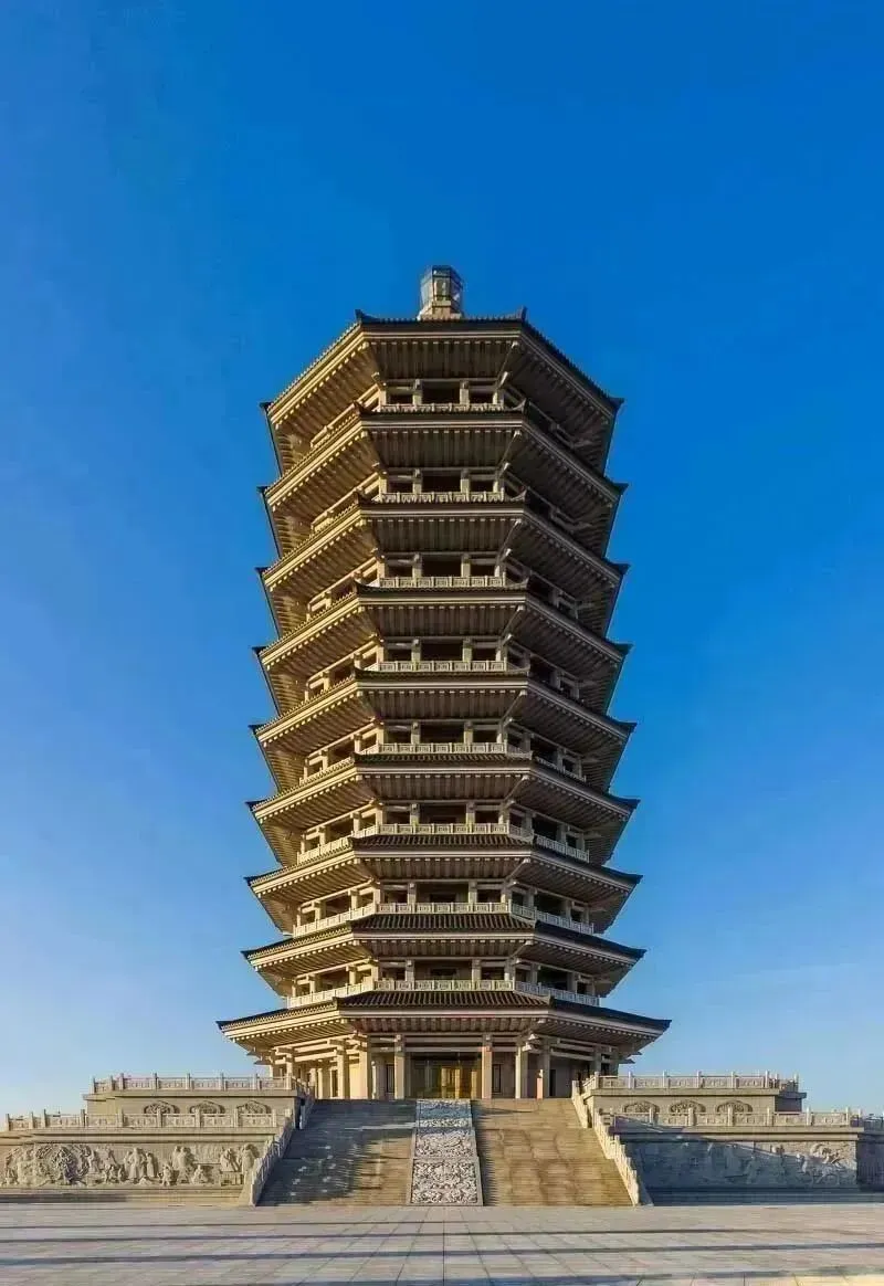 东极宝塔位于黑瞎子岛东北部极角,主要景观设施有宝塔、“神龟探水”“麒麟献瑞”“中华东极宝鼎”、大型浮雕“华夏长卷”等。东极宝塔采用八角形,属汉唐风格。太极图案的圆形广场直径171米,代表黑瞎子岛回归的171平方千米领土。