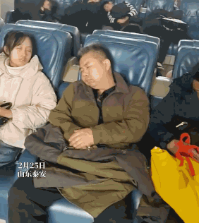 泰山的返程候车室,睡满了精疲力尽的年轻人,不知道其中有多少位是“旅游特种兵”?/微博@人民网