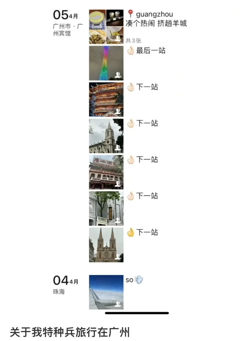 “旅游特种兵”的朋友圈。/小红书