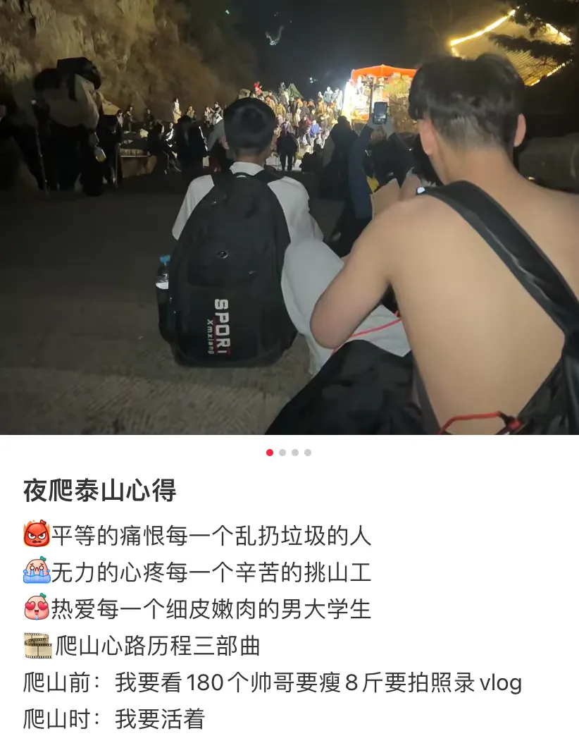 那些夜爬泰山的学生里,不少人第二天是拄着拐走进早八课堂的,还有少数人因持续性过度行走,引发急性筋膜炎或半月板损伤。出门一趟,回来躺半月。