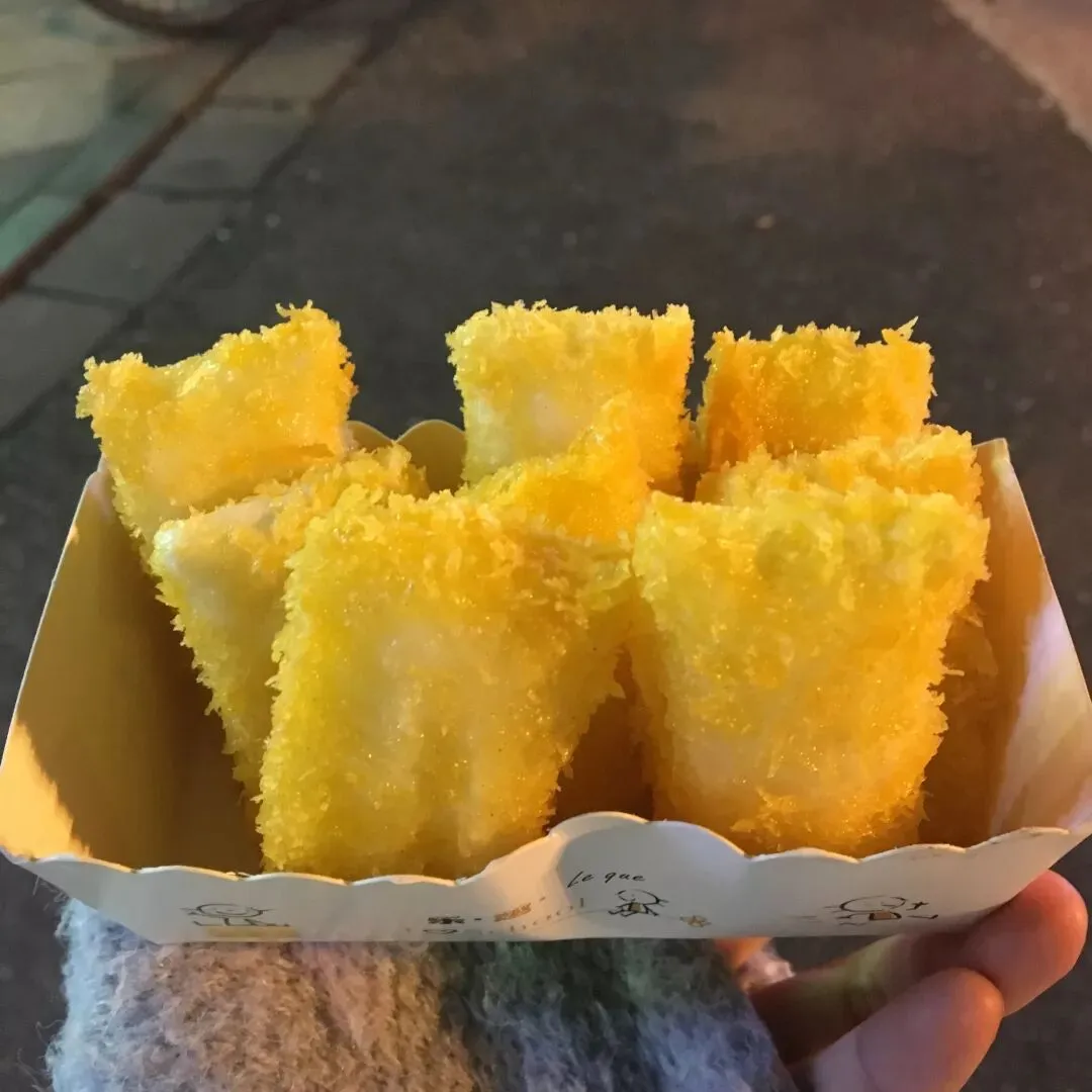 买了一份炸酸奶,味道一般还很贵)