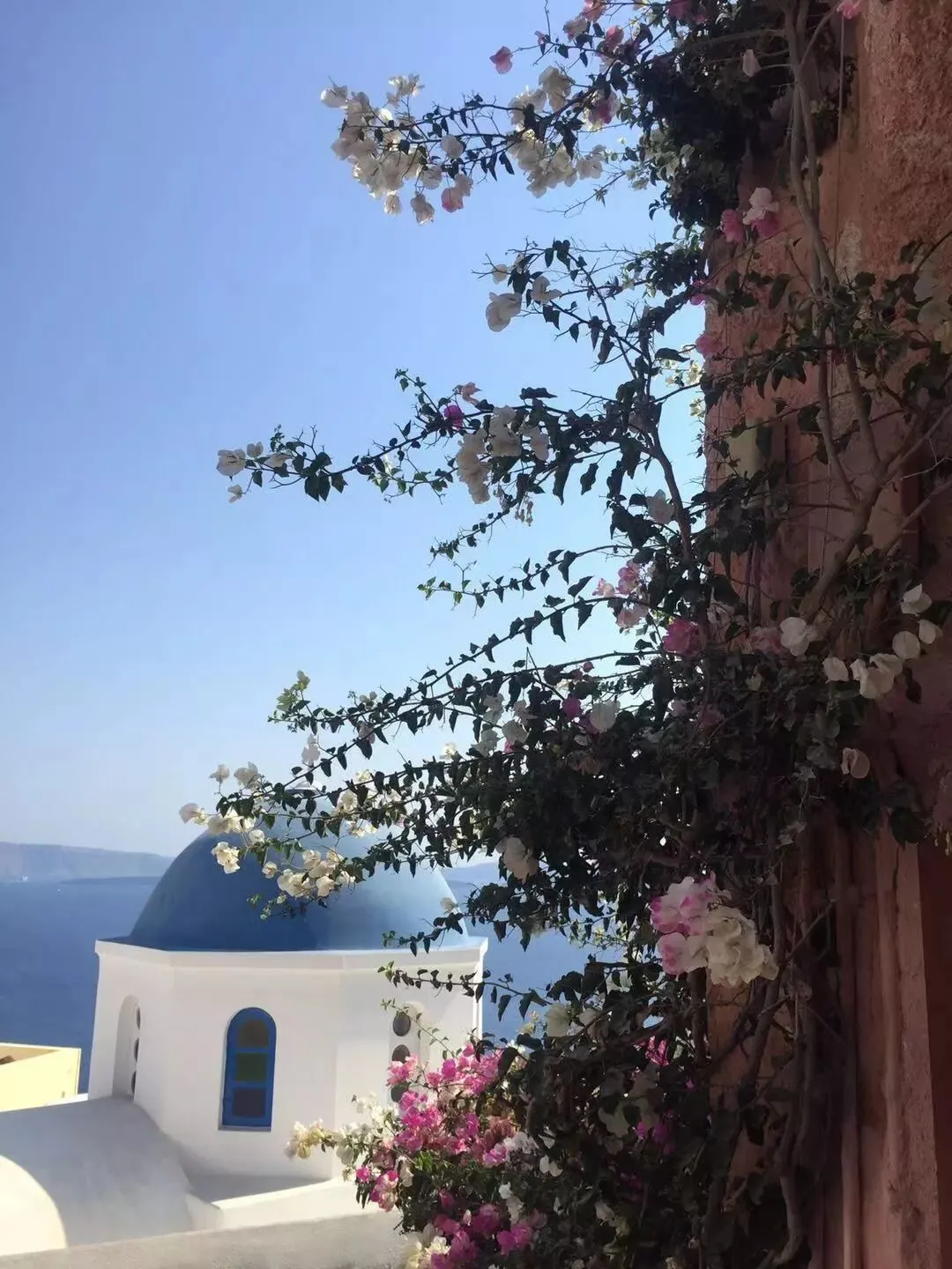 想象中的圣托里尼风景旖旎,爱琴海波光粼粼,这是一个充满爱和幸福的圣地,看到的是蓝顶白墙下恬静淡然的美景。