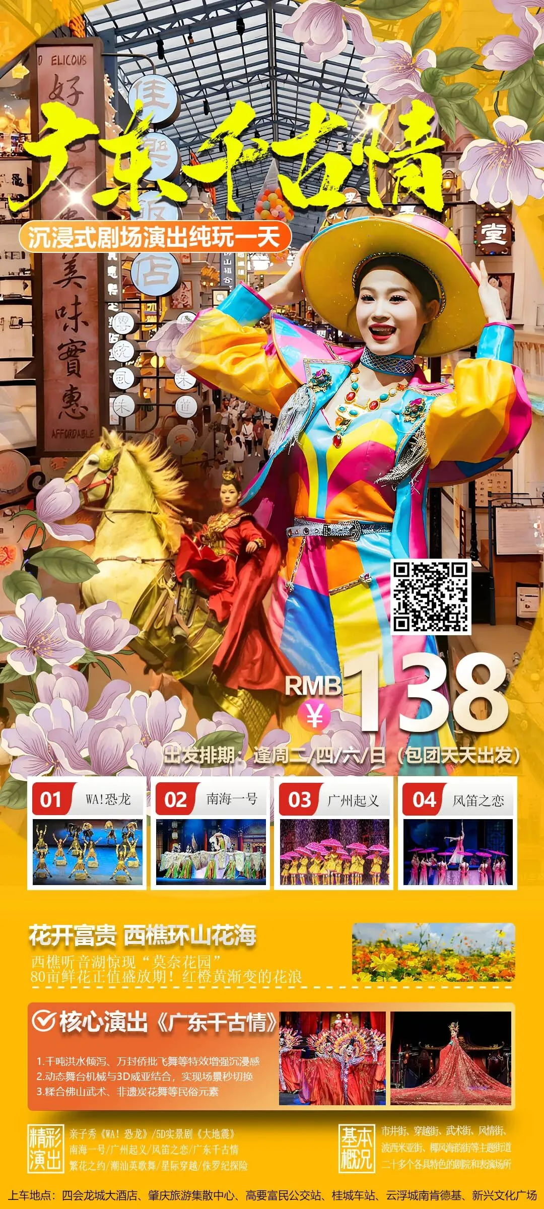千古情团队王炸促销!景区限时特惠千古情视觉盛宴佛山纯玩一天¥138元/人