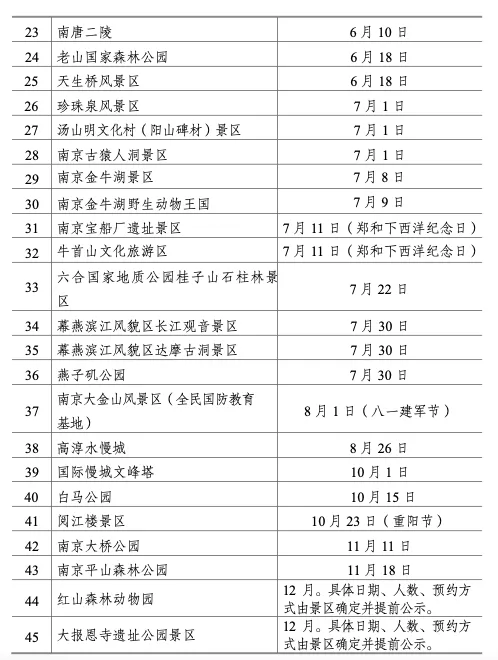 据市发改委,2023年度南京市实行政府指导价管理景区免费开放日已经公布,共涉及45家景区。其中,最早一家为园博园景区,3月26日开放。