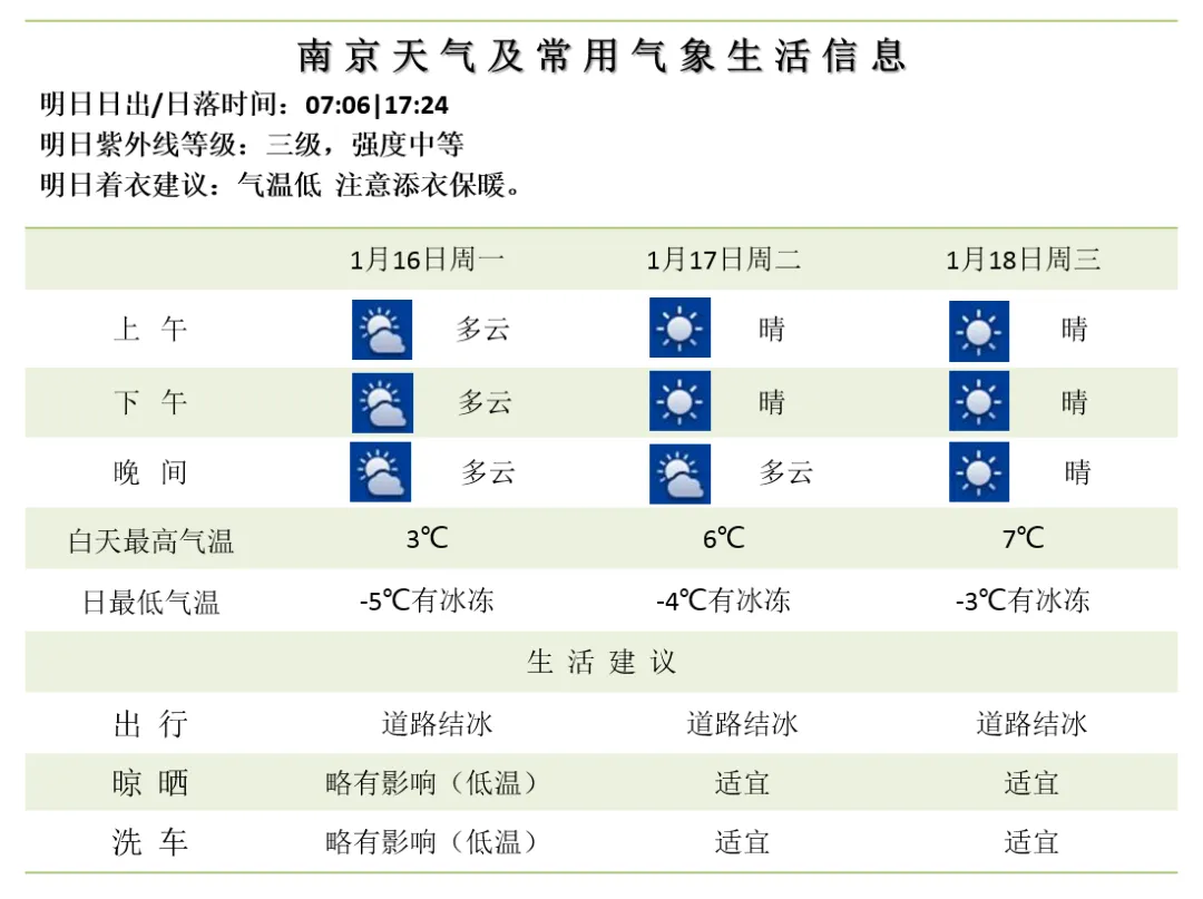 45家景区,免费开放日来了!虎年最后一周开始啦! 加油! 要 闻 >> 01 勠力同心再出发,砥砺奋进开新局。新一届省人大代表肩负着全省人民的信任和重托步入江苏大会堂,认真履行宪法和法律赋予的神圣职责。会场庄重简朴、气氛热烈,二楼眺台悬挂的“深入学习贯彻习近平新时代中国特色社会主义思想,为在新征程上全面推进中国式现代化江苏新实践,更好‘扛起新使命、谱写新篇章’而团结奋斗!”标语,分外醒目,催人奋进。 02 1月15日下午,省十四届人大一次会议南京代表团召开全体会议,审议省政府工作报告。省市领导韩立明、夏心旻、阎立、石时态、陈之常,正省级老同志梁保华参加。 03 【韩立明春节前深入基层走访慰问】 根据省、市委统一安排,春节前夕,市委书记韩立明来到高淳区深入基层走访慰问,看望困难群众、低保户、退役军人、老党员等,把以习近平同志为核心的党中央的关怀和温暖送到基层干部群众心坎上。 今日关注>> 01 02 兔年非遗琳琅满目、文化展览干货十足……在兔年春节即将到来之际,南京市民俗博物馆和熙南里历史文化休闲街区为市民献上一台民俗文化盛宴。1月14日至15日,“玉兔贺岁迎新春,福瑞安康过大年”2023第十届南京民俗文化节暨第三届南京楹联文化节活动吸引了众多市民游客。 03 笔墨挥洒间传递出浓浓年味儿,红彤彤的果实盆栽装点着喜庆新年,传统手艺人现场展示着非遗魅力,“逛吃逛玩”的年货市集凭实力持续“圈粉”……1月14日至15日,“‘艺’统国潮in栖霞”活动在栖霞区新尧金地广场举行。该活动结合“我们的节日·春节”主题,将传统文化融入现场活动,塑造消费新潮流,营造出火热浓烈的新年氛围。 04 01 南京文旅: 02 南京教育发布: 伴随天气的逐渐好转 未来三天全市都将以多云到晴的天气为主 年前的洗晒工作抓紧时间开展 需注意的是 未来三天 寒潮天气的影响依然存在 17日、18日最低气温 预计在-3℃到-4℃左右 提醒大家务必要注意保暖 谨防感冒!