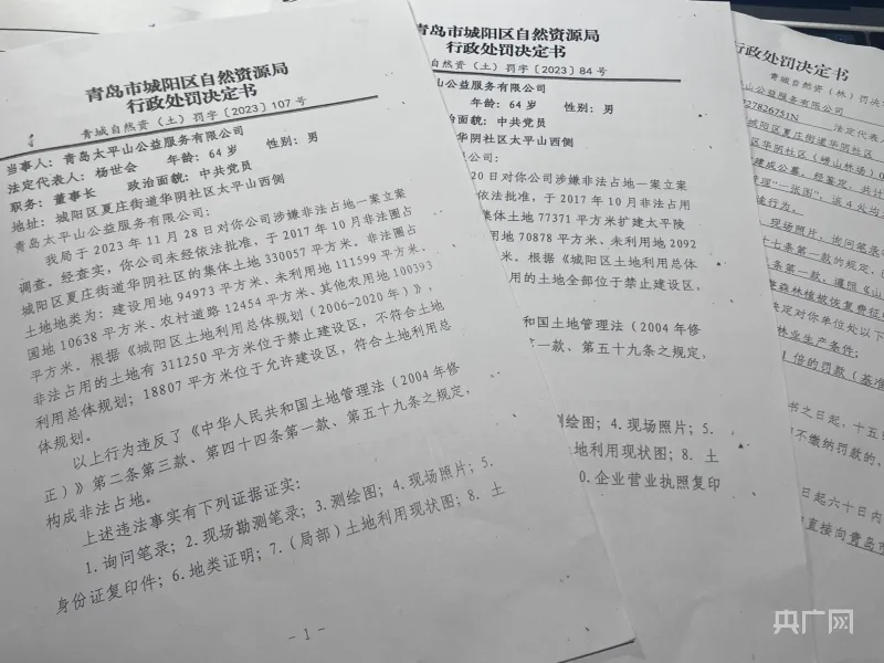 城阳区自然资源局开出的行政处罚文书(总台中国之声记者管昕摄)