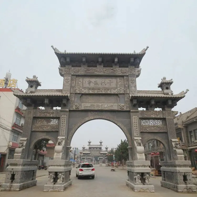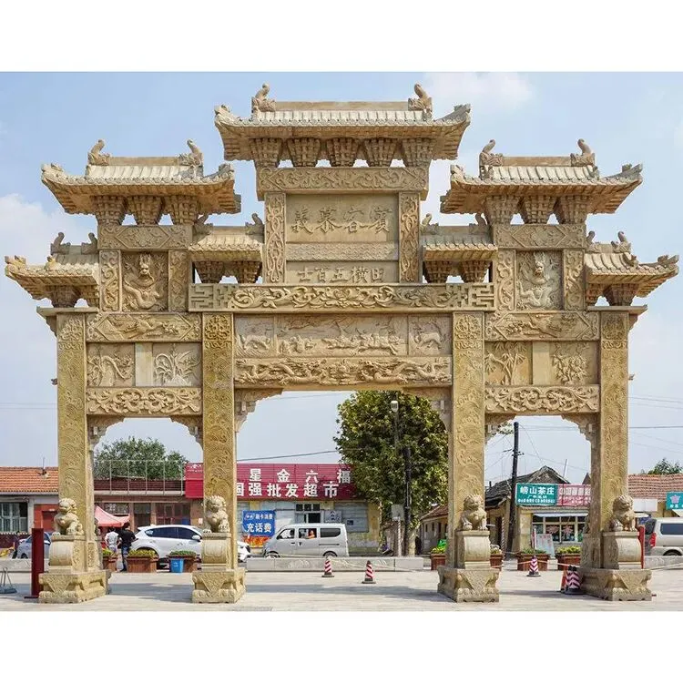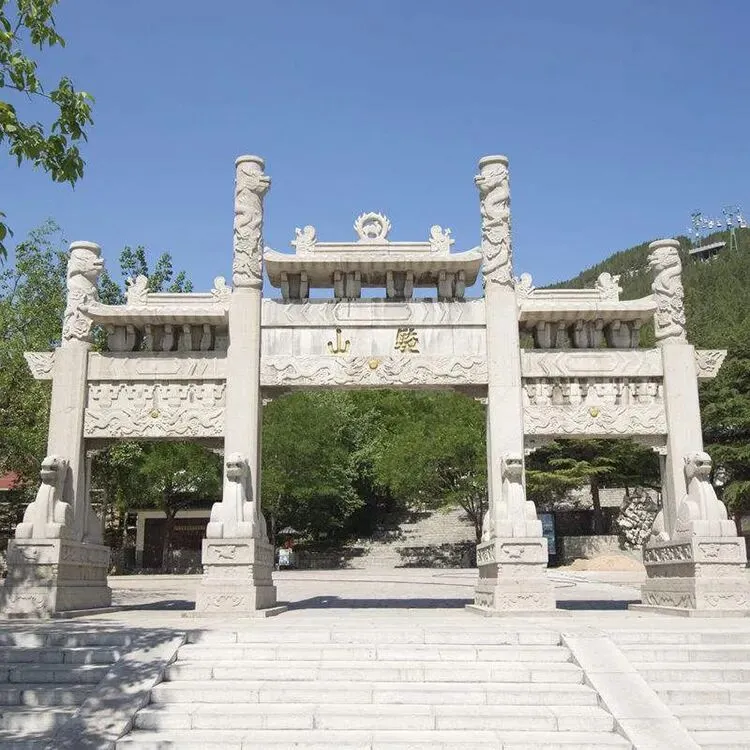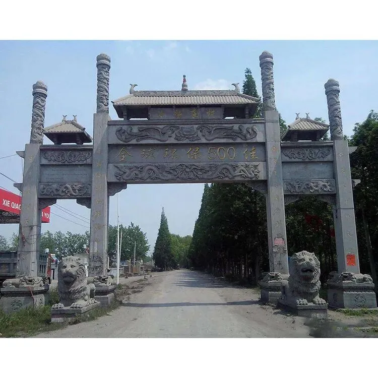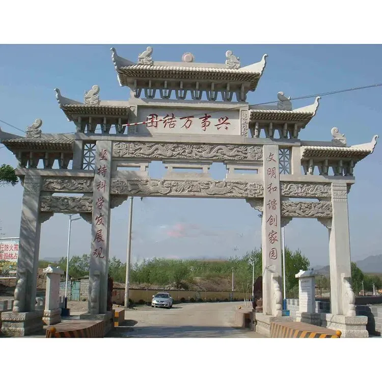 深耕工艺,体现在对细节的极致追求与对品质的严格坚守。针对景区石牌楼的景观属性,匠师们结合景区的自然风貌与文化主题,精准设计造型与纹饰——山水景区的石牌楼,雕刻山水画卷、花鸟景致,与周边风光浑然一体;人文景区的石牌楼,镌刻历史典故、文化符号,彰显地域人文底蕴;民俗景区的石牌楼,融入民俗元素、吉祥纹样,传递浓郁的民俗气息。从柱体的挺拔度、飞檐的翘角弧度,到纹饰的勾勒、线条的流畅度,再到文字的镌刻、打磨的质感,每一刀都精准细腻,每一处都精益求精,让石牌楼既有石质的厚重底蕴,又有艺术的灵动美感,完美适配景区的景观格调。