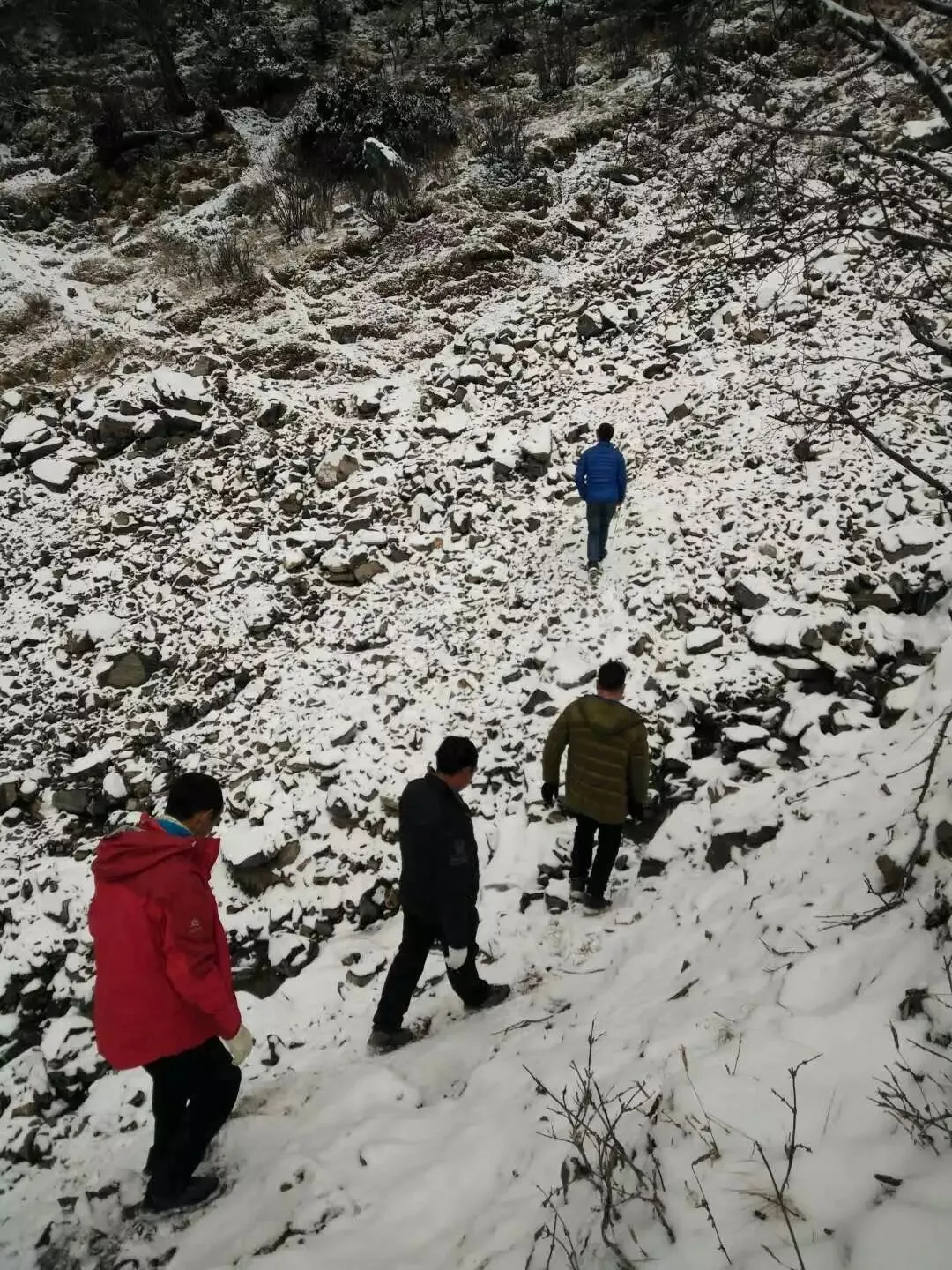 搜救队在山上搜寻