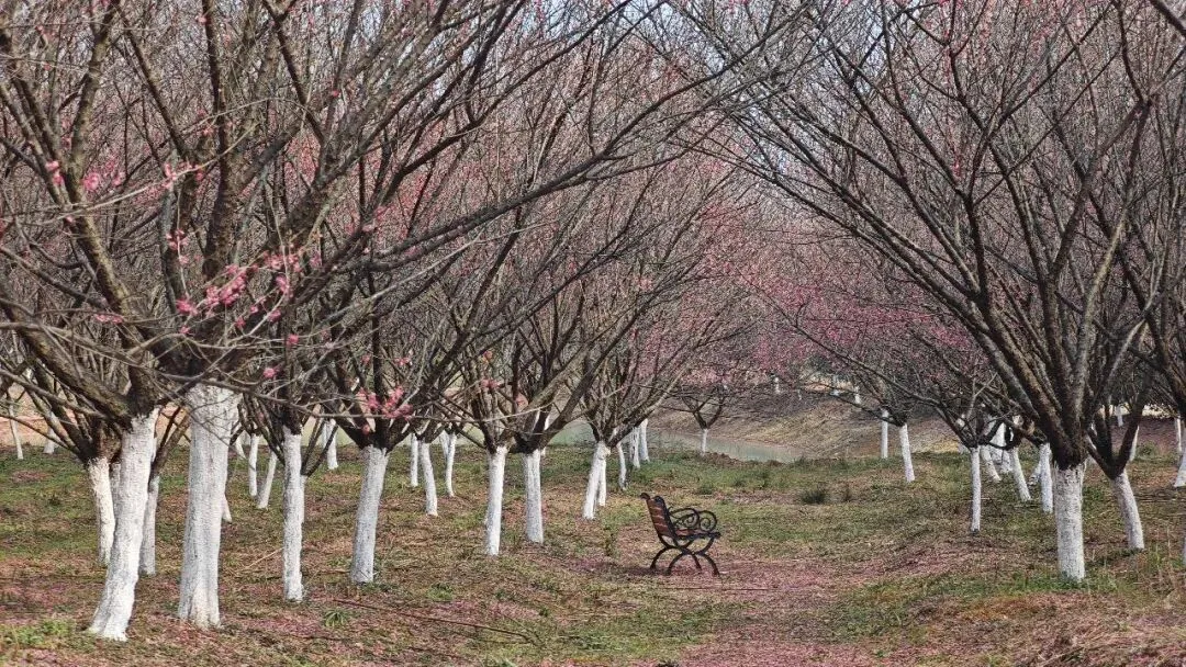 梅园春色 关于梅花的诗,他信手拈来。 “疏影横斜水清浅,暗香浮动月黄昏”; “不要人夸颜色好,只留清气满乾坤”; “待到山花烂漫时,它在丛中笑”; 办公室里,是一整柜关于梅花的书籍,案头的笔墨纸砚,是他闲时的亲密伙伴。头戴一顶复古礼帽,他像一位旧时的文人;而换鞋下地,带着工人们一起修剪劳作,他又成了那个最“接地气”的种树人。