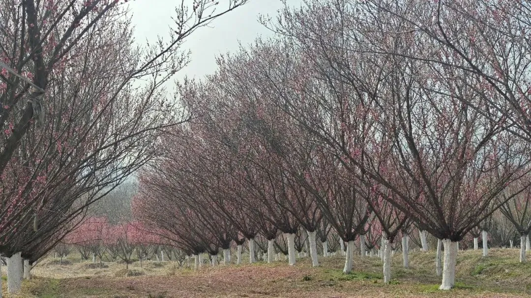 苗圃转型文旅,路虽坎坷,行则将至。 园区道路改造,景观节点设计,都是新的课题。丁玉柱跑遍各地景区参观学习,回来总结经验,步步推进。 为了延长观花期,丁玉柱引进了数十个梅花品种,筛选适合观赏的进行培育。因为喜爱垂梅飘逸的姿态,他用红梅嫁接,培育了数千株独具特色的垂梅。