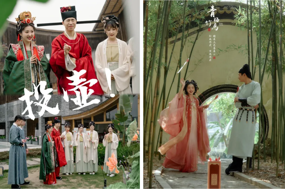 - IP美学装置:以热门剧集《国色芳华》为灵感,设置六大主题拍照区:“花间词话”、“锦绣华服”、“古韵茶香”等,每个区域都精心布置,极具古典美感。