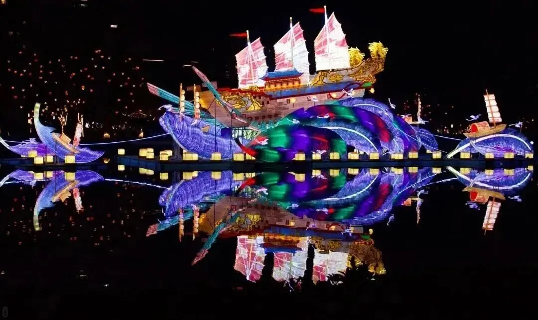 - 鼓楼:以“海上丝绸之路”为主题,灯光呈现商船、货品等元素。