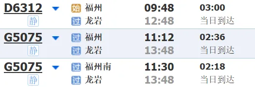 古田会址站或龙岩站到发车票