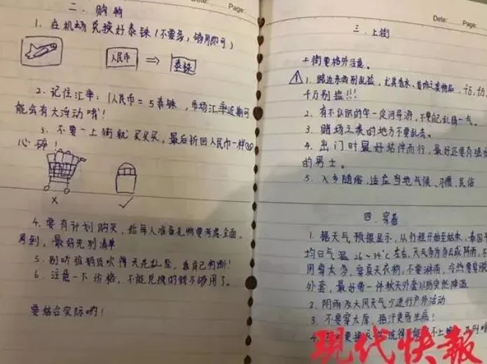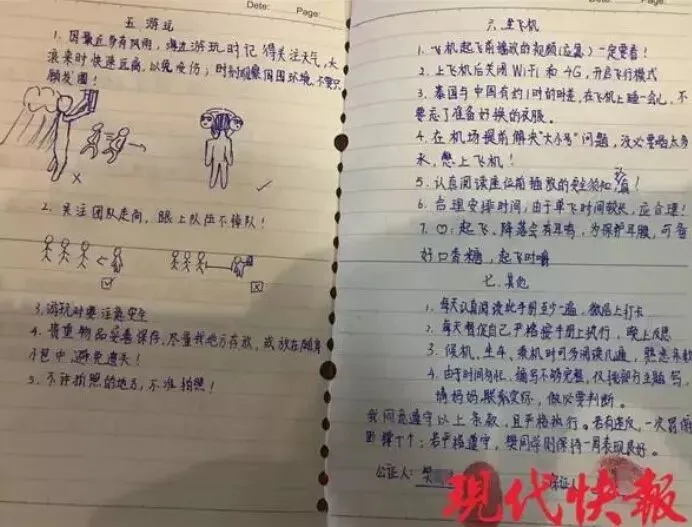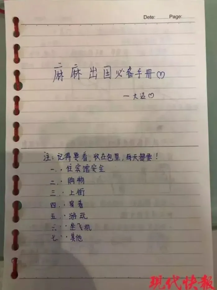 女孩为妈妈手绘出国旅游攻略:妈妈比较粗心,像个小孩子
