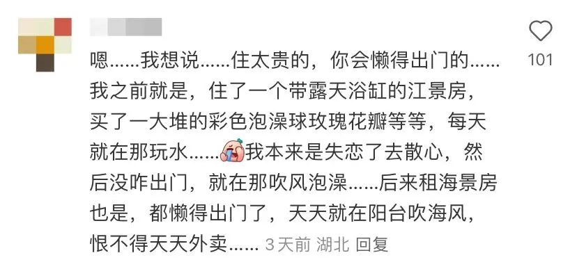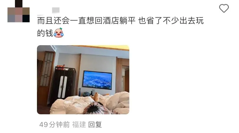 用网友 @momo 的话说就是:“酒店太舒服了,不利于出门。”