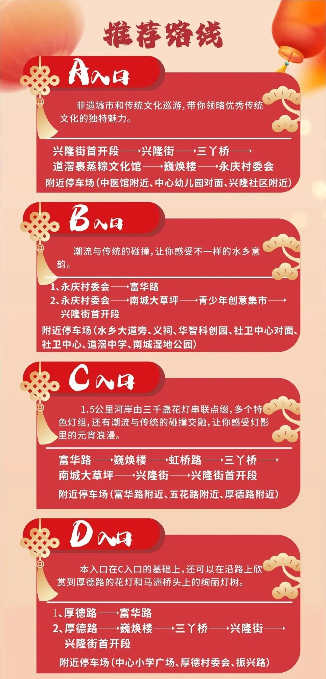 4、错峰出行,精彩不停歇。活动届时会在“和美道滘”抖音号上进行直播,大家可以留意直播预告信息进行观看;请广大市民、群众合理安排出行计划;此外,活动结束后,本次活动的花灯装置将持续亮灯至本月底,市民朋友可错峰错时前来欣赏。