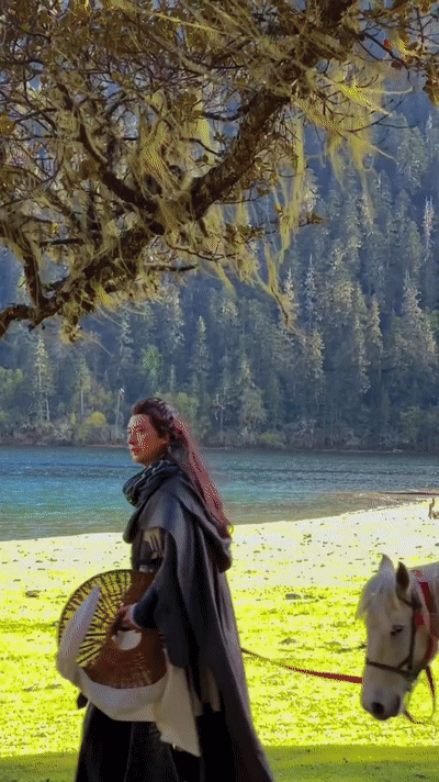 划竹筏、游湖岸👇 身着劲装、牵骏马👇