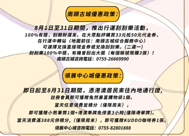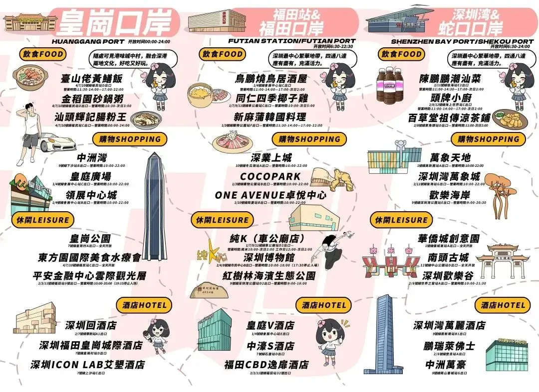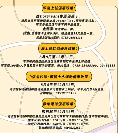 悄悄告诉你们,这次折页共分为两个部分:玩转口岸一公里+深圳游玩打卡地图,吃喝玩乐购一应俱全,香港友友们无论是想下班来深或周末游短期出行,都能轻松满足。还汇总了深圳目前各大商圈、景区对香港同胞们的专属优惠信息!