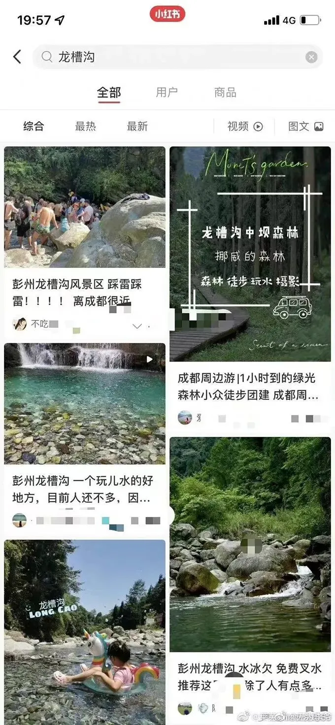 事发后,一些社交平台对此类荒野“景点”、“网红打卡地”作出风险提醒。目前,小红书、抖音等平台尚未对此事作出相关回应。 小红书上用户发布对事发地的攻略推荐 澎湃新闻检索小红书发现,关于彭州龙漕沟的相关游玩攻略已被下架,检索时出现“旅游出行,安全第一。请勿在危险地方逗留、游玩”的提示。此外,在抖音平台搜索“野外戏水”内容,平台提醒:临水游玩,请注意风险提示,保护好自身安全。