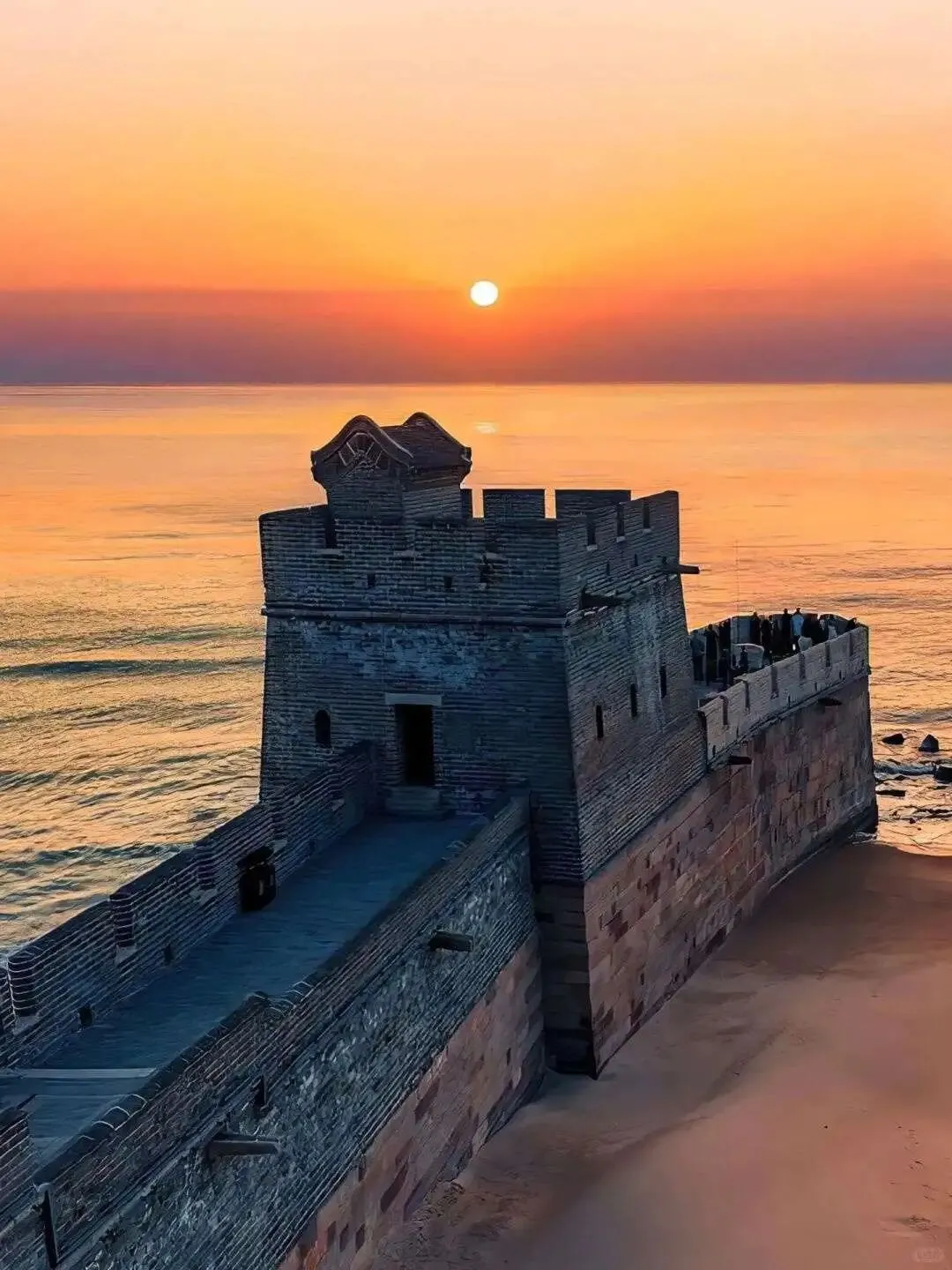 在渤海边上.,有.一.段老城墙伸进.海里,石头被浪打得.又黑.又亮。古人说它是“天下第.一关.”,名字起得一.点.不客气。但当你真站上去,海风迎面.,确实会觉.得,.有些名头.,不是.白叫的。
