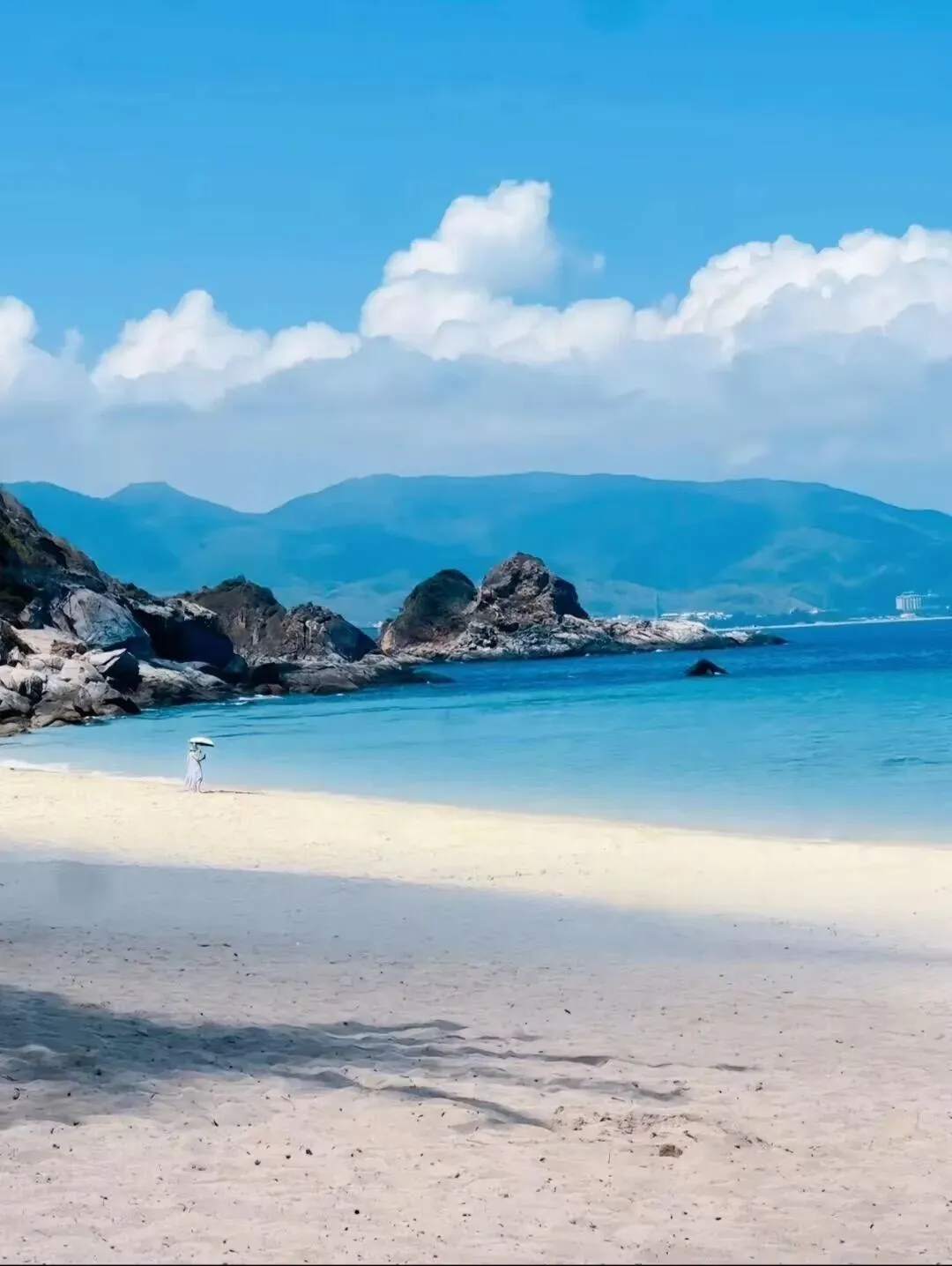 踩上亚龙湾的沙滩,.沙细.得像粉,.白得晃眼。.海水从近处的.透明绿,.一路变到.远处的深邃蓝,.层次分.明。什么都不用干,租.把伞躺一下午,.看.浪一遍遍扑上来又.退.下去,时间就被海风吹散.了。