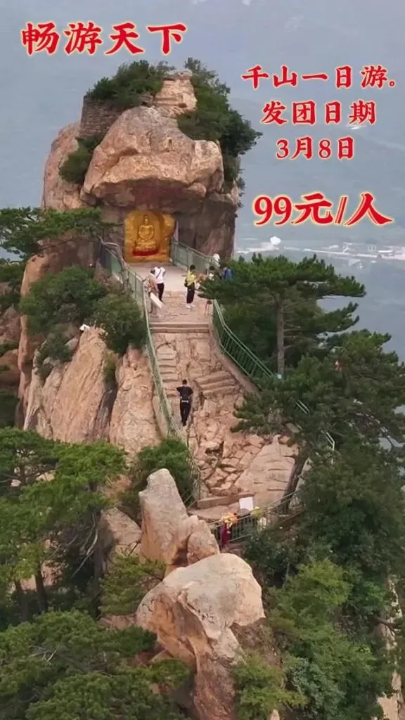 鞍山5A级景区千山🏔🏔🏔登山一日游 3月8号 周日女神节各位女神 免票啦 免票啦 免票 发团日期: 3月8号团费: 99元/人(门票自理)费用包含:往返车费+保险千山 景区☞自理☞免票0元:1.3米以下儿童(6周岁以下儿童),70周岁以上老人,残疾证、军官证、现役及退役军人优待证、记者证、人民警察证等都免门票!(持有以上证件免门票、报名时需提供) 半票30元:60~69周岁、6周岁(不含)~18周岁(含)、大学生持学生证(24周岁以下) 🤶成人60元:19-59周岁