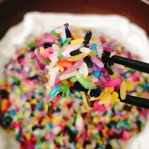 花糯米饭:布依族特产,用植物汁液染成五彩,清甜软糯,可凉吃或加蜂蜜