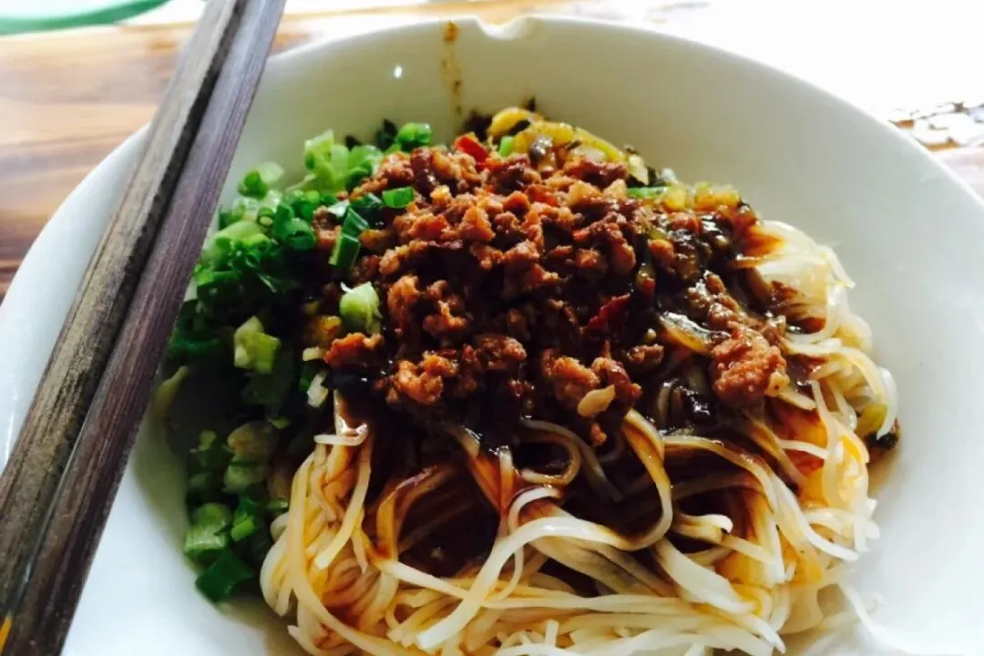 蒸饵丝:本地筒子饵块切细蒸熟,拌辣椒油和酱香臊子,早餐必备