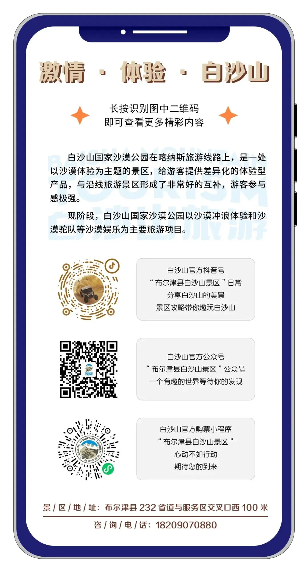听见风过沙脊,听见驼铃轻响,听见家人笑语,听见世界温柔。布尔津白沙山景区愿与您一起,全民科学爱耳,共护听力健康,让每一段旅途、每一次相遇,都听得清晰、听得安心、听得长久。