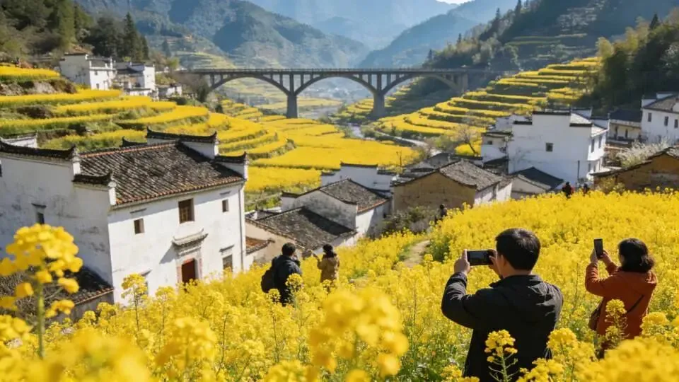 ⏰ 最佳游玩时间:三月温和,适合漫步古镇街区 🌼 婺源 · 篁岭梯田花海