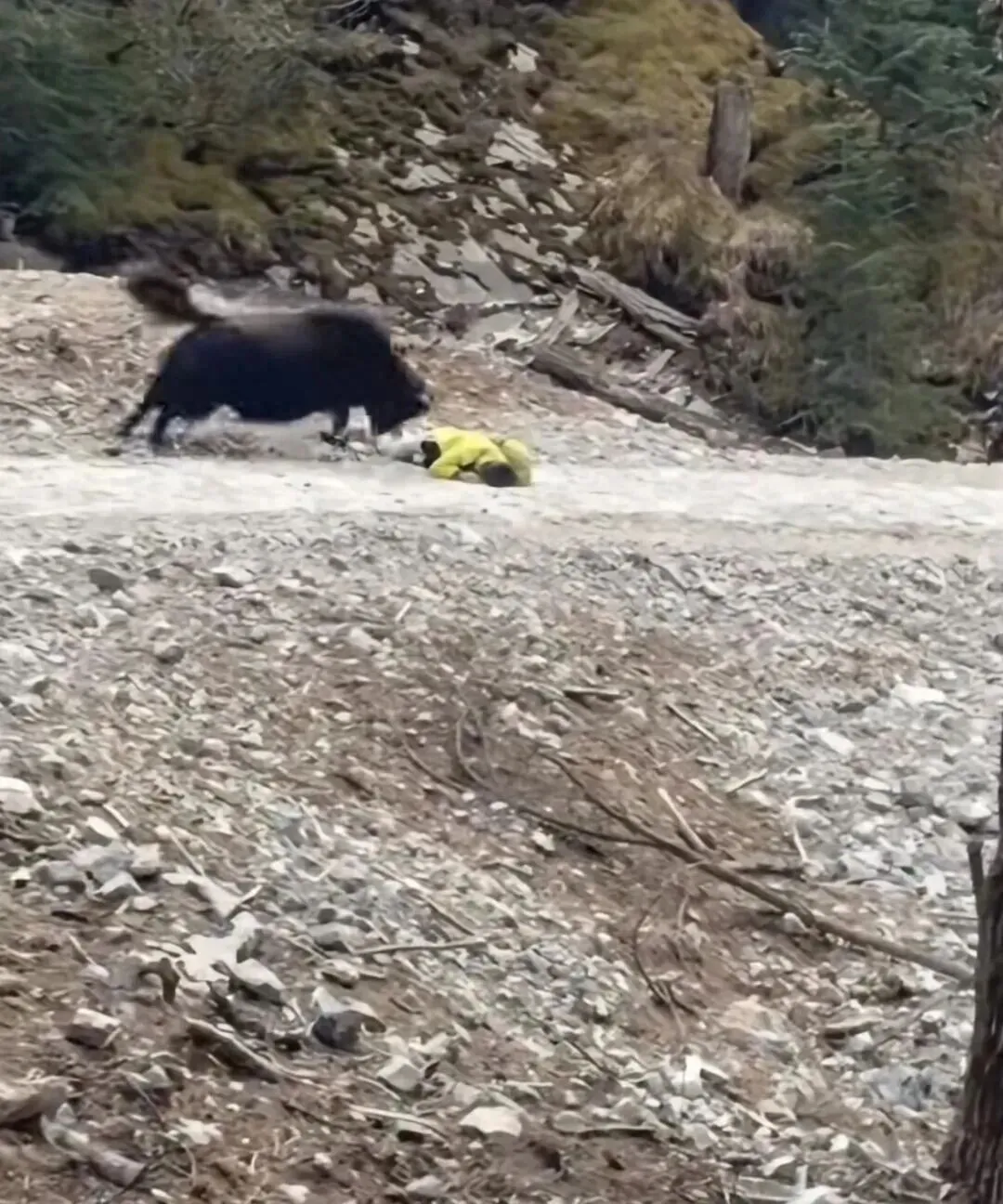 2月28日,有网友发视频称在甘肃甘南扎尕那大景区有牦牛顶人,现场视频显示,一身着黄色上衣的人员躺在地上,一头牦牛用头顶其后从其身上踩过。视频画面外,有人大喊“这里有人被撞了!”、“把脑袋护住!”