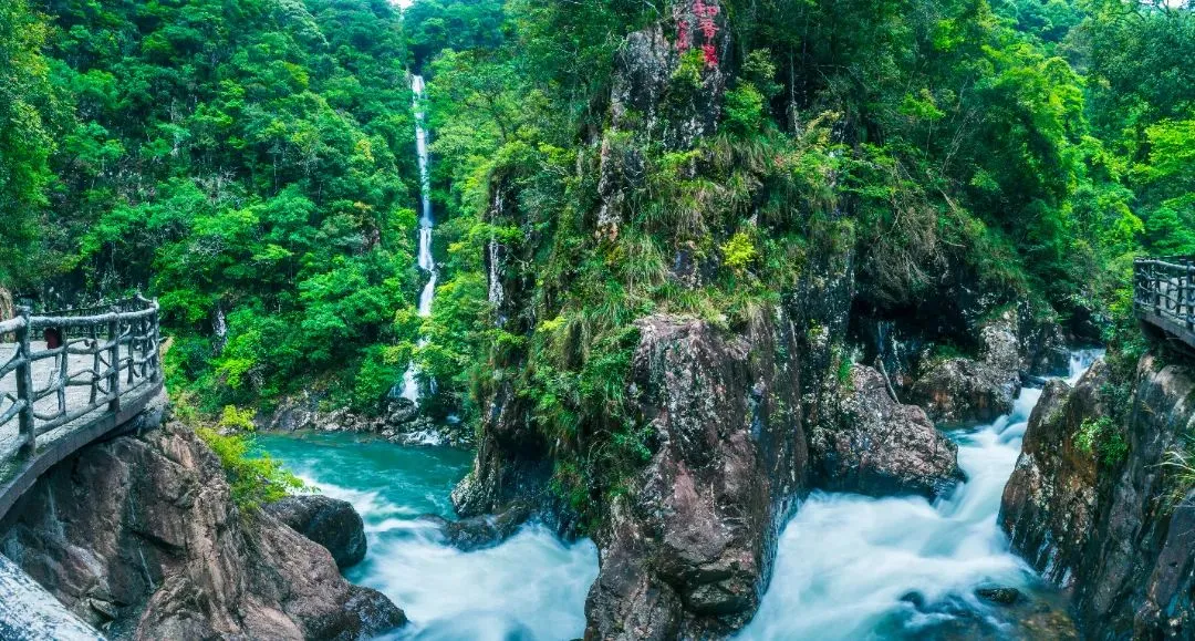 前往【三百山瀑布群】三百山中飞流瀑布众多,大大小小共计50多处,其中气势最为恢宏的就是“东江第一瀑”一定不要错过。瀑布在山涧中流落滔滔不绝的落下,整个瀑布落差有近百米,瀑布右侧还有一处天然观瀑台,石台边树木盘横,自动形成天然的栏杆,保护游客安全。