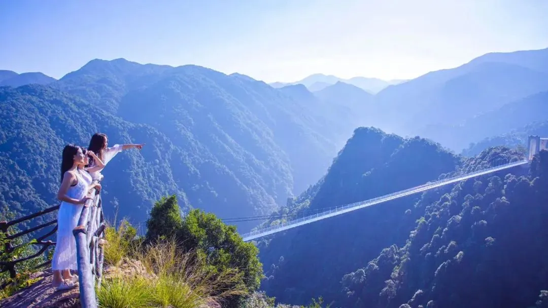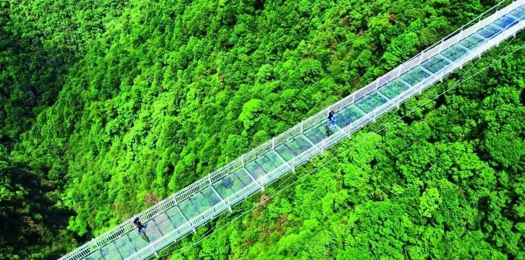 前往【玻璃天桥】体验全长330米,宽2.5米,最高落差198米,是目前江西最长的玻璃天桥。山间云雾缭绕,横跨两山的玻璃桥仿佛横架云端,恰似人间仙境。玻璃眺台应用杠杆原理,内接崖壁,外挑6.6米,采用国家专利技术的三层夹胶防爆玻璃,每平米可承重300公斤,桥面可同时容纳25人。