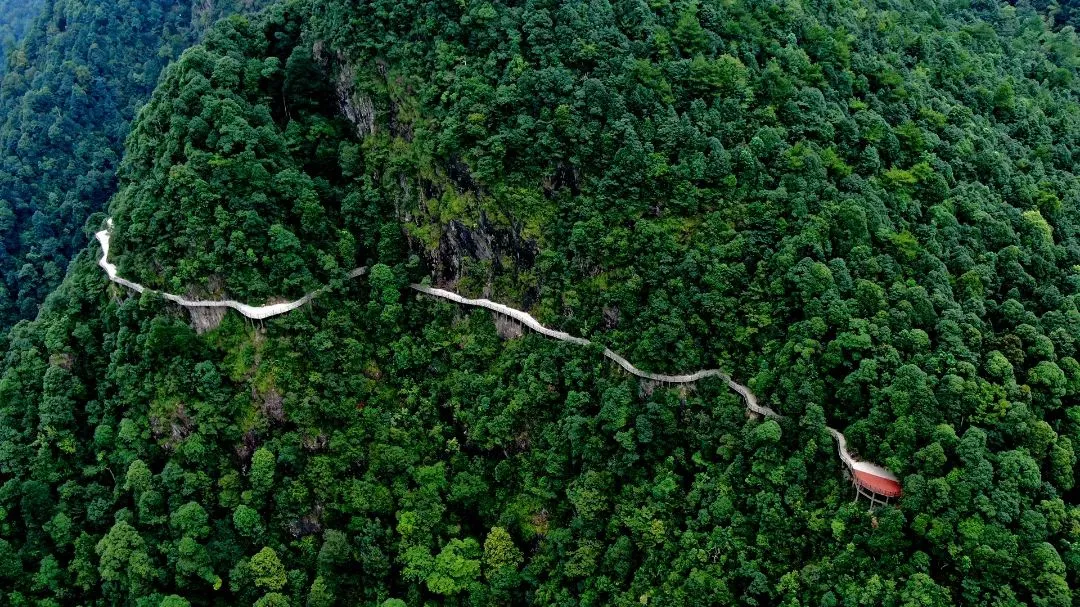 全长3166米,在这里你可以观览群山,如若选择在多云雾的的天气游览,有一种在云中漫步的惬意和浪漫。