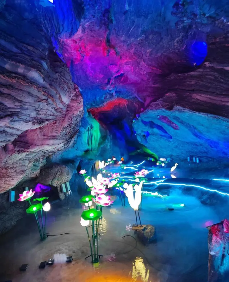 溶洞在南方不算稀罕,但布甲这片溶洞群规模大,而且形态丰富,钟乳石、石笋、石柱、石幔,该有的都有,灯光打上去,确实漂亮,但更有意思的是洞里的水,清澈见底,流动的声音在洞里回荡,那种感觉很奇妙。