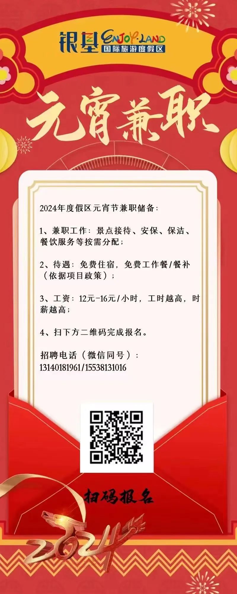 一、银基度假区2024年正式工、元宵节兼职招聘