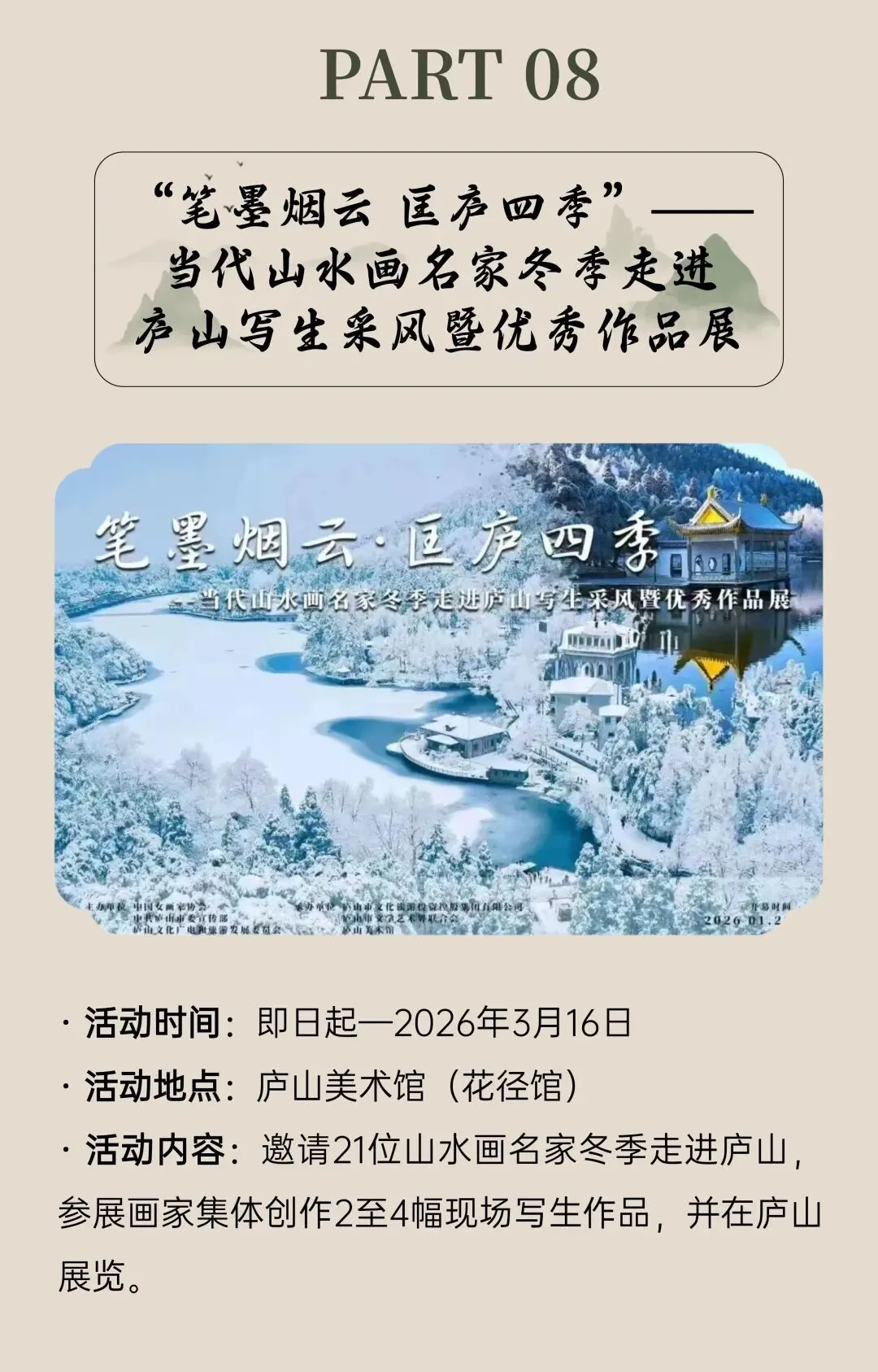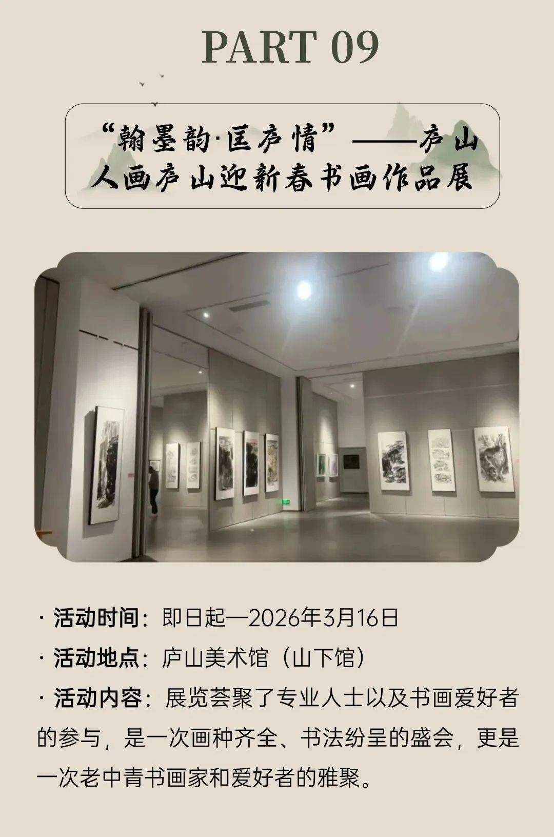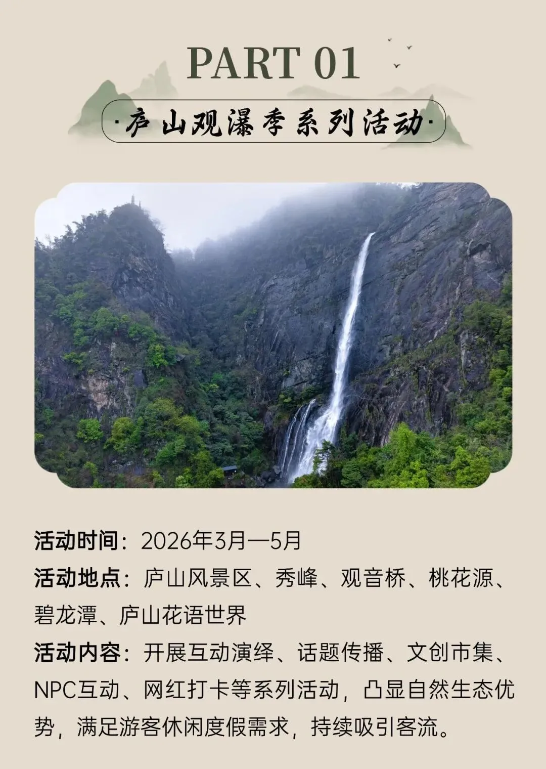【景区免票】庐山2026年3月免收门票HAPPY CHINESE NEW YEAR 免票时间 HAPPY CHINESE NEW YEAR 免票对象 HAPPY CHINESE NEW YEAR 免票范围 HAPPY CHINESE NEW YEAR 车辆预约进山方法 HAPPY CHINESE NEW YEAR 武汉-庐山火车 同时,3月庐山还有系列活动。