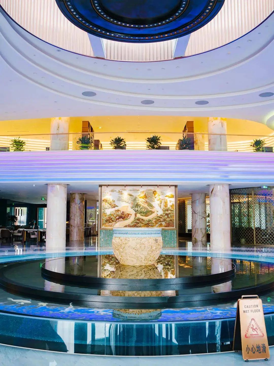酒店结合了户外室内所有区域,巨资打造的8大网红点!大堂门口的鱼跃飞鸟也是景点之一,与千岛湖美景遥相呼应。西门口,则有花鲢嬉水,一座巨型包头鱼雕塑。