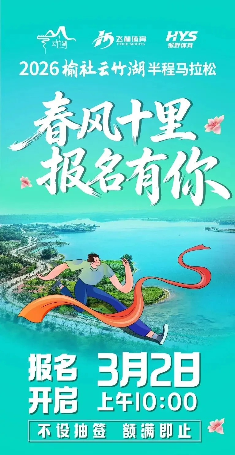 来了!山西省晋中市赛事——2026榆社云竹湖马拉松定档4月26日鸣枪起跑,报名将于今天(3月2日)开启。比赛设半程马拉松一个项目,共3000人,报名不抽签、先报先得、额满即止。