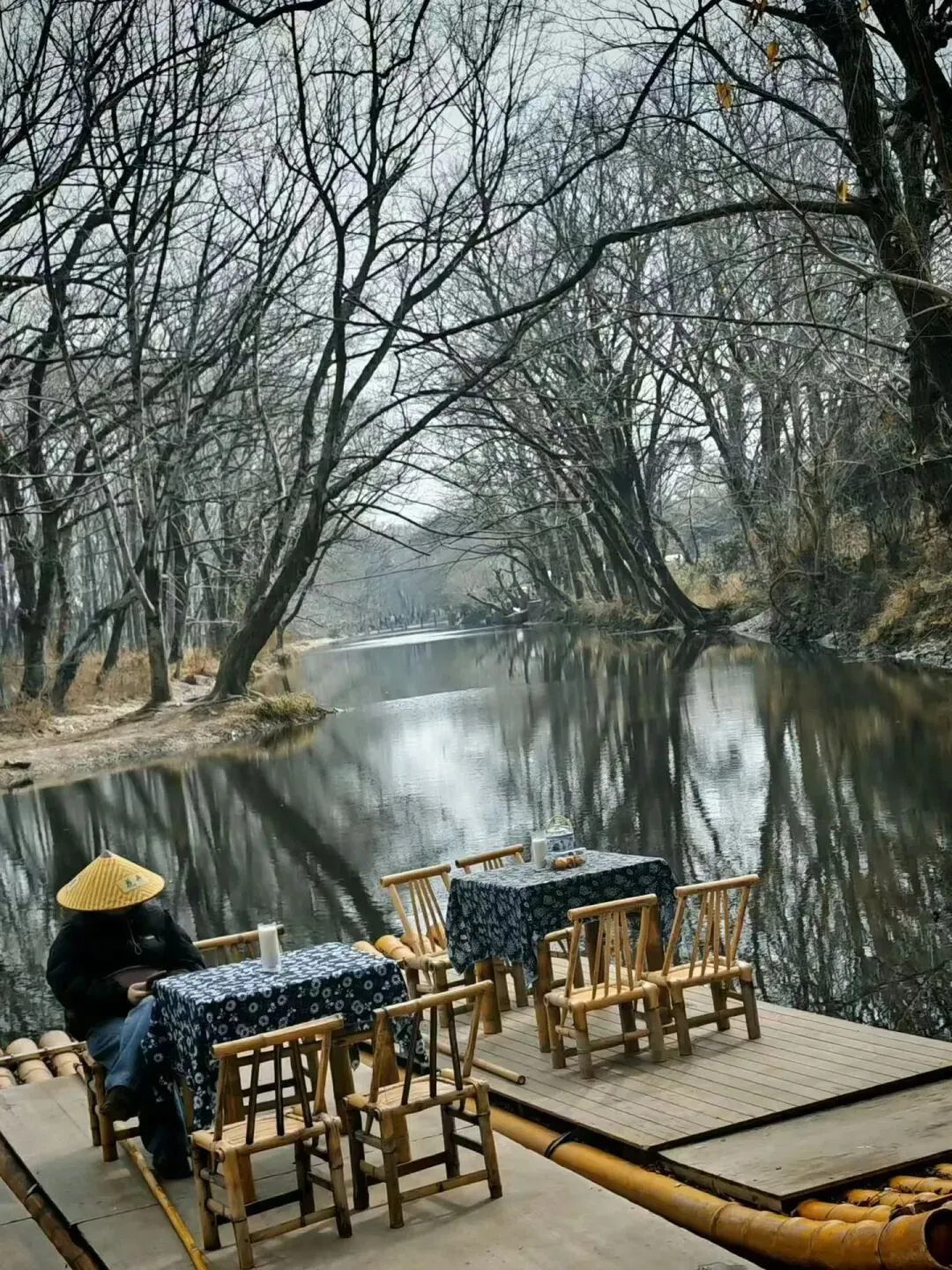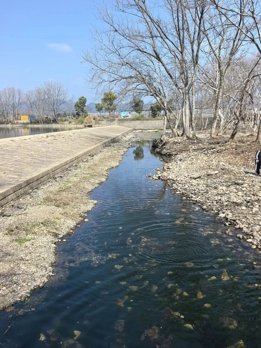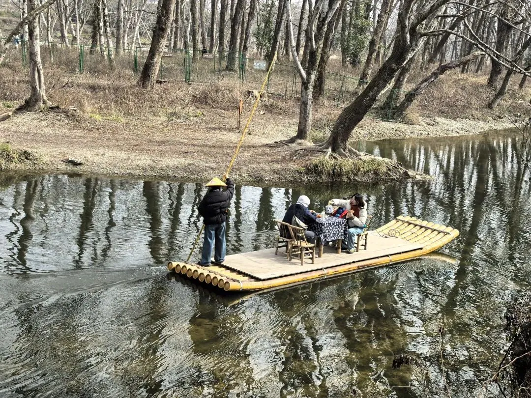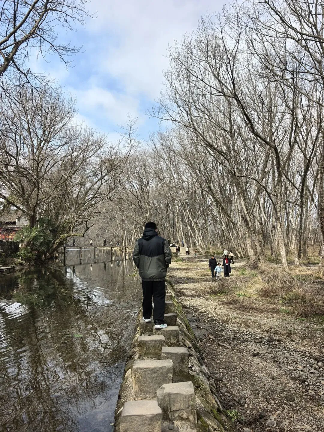 然而顺着即将干涸的溪流,两边都是光秃秃的枫杨林,一片冬天萧瑟景象,哪有绿野仙咖的风景,后来坐景区巴士时听司机说要在四月份雨季时来就是另外一番景象了:溪水淙淙,绿树成荫。